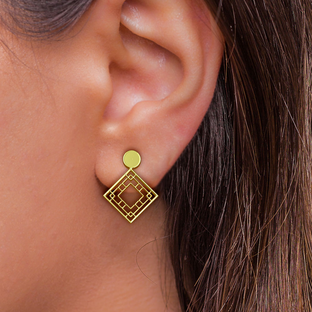 گوشواره طلا 18 عیار زنانه مدوپد مدل لوزی کد GA1-10476