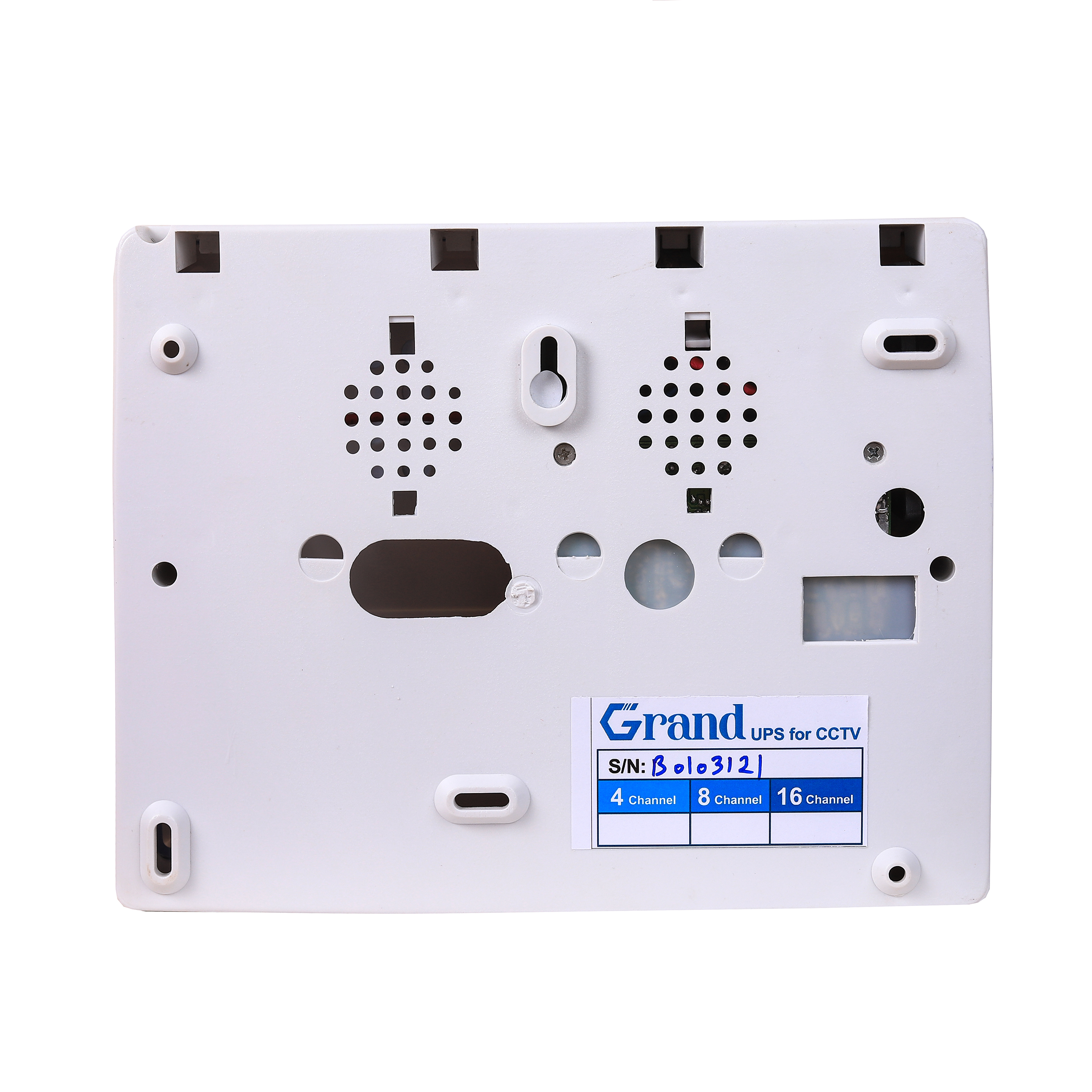 دستگاه یو پی اس ۸ کاناله مخصوص دوربین مدار بسته و DVR.این نوع یو پی اس دارای حداکثر جریان ۴۰ آمپر است و به کمک آن می توان در زمان قطعی برق شهر توسط یک عدد باتری ۱۲ولتی برق مورد نیاز ۸ عدد دوربین و یک عدد DVR تامین کند. مهمترین مزیت سیستم یو پی اس دوربین مداربسته تاییدیه اداره اماکن است. این مدل دستگاه قابلیت نصب باتری ۷ و ۹ و ۴۰آمپر بیرون از محفظه دستگاه را دارد که در صورت تهیه باتری ۷ آمپر ۳۰ دقیقه و باتری ۹ آمپر ۵۰ دقیقه، باتری ۴۰آمپر ۲ ساعت و برق مورد نیاز ۸ عدد دوربین و DVR را تامین میکند.از مزیت های این دستگاه می توان به موارد زیر اشاره کرد: ۱-داشتن منبع تغذیه ۱۲ولتی ۲-دارای LED جهت نمایش وضعیت یو پی اس (حالت NORMAL و BATTERY ) 3-دارای ابعاد کوچک و وزن کم و نصب به صورت دیواری و رو میزی ۴-دارای ۵ عدد خروجی مجزا که شامل ۴ عدد خروجی ۱۲ ولتی برای دوربین، یک عدد خروجی ۱۲ ولتی برای DVR و تمامی خروجی های این یو پی اس دارای فیوز جداگانه می باشد.